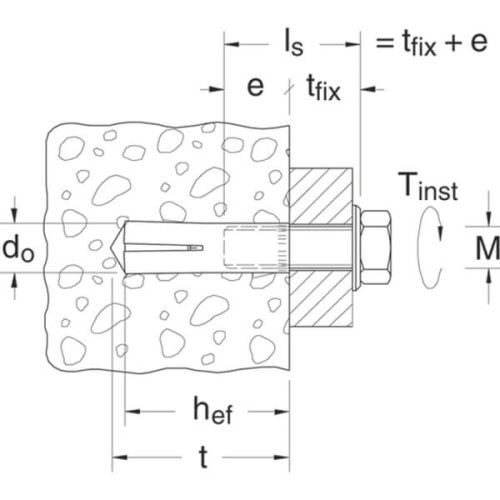 Внутренняя резьба d M12; Диаметр бура, анкера d(0) 16 мм.; Мин. Глубина внутренней резьбы L(thmin) 16 мм.; Длина L 50 мм.; Глубина отверстия h(0) 50 мм.; Технические данные Бетон С20/25, ETA Option 7,вырыв 9 кН; Момент затяжки T(inst) 35 Нм.