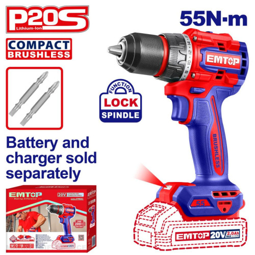 Дриль-шуруповерт акумуляторний EMTOP ECDL205581 (без АКБ та ЗП)