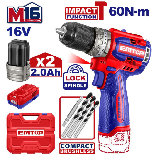 Дриль-шуруповерт акумуляторний EMTOP ECIDL16682