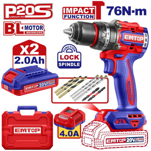 • Дриль-шуруповерт акумуляторний EMTOP ECIDL207686