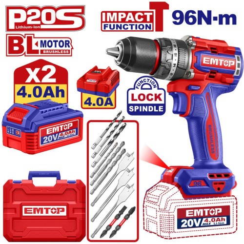 Дриль-шуруповерт акумуляторний EMTOP ECIDL20968