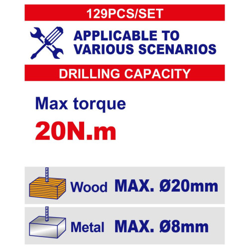 Дриль-шуруповерт акумуляторний EMTOP EEDK12901 + набір інструментів 129 шт.