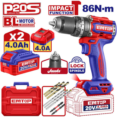 Дриль-шуруповерт ударний акумуляторний EMTOP ECIDL208689