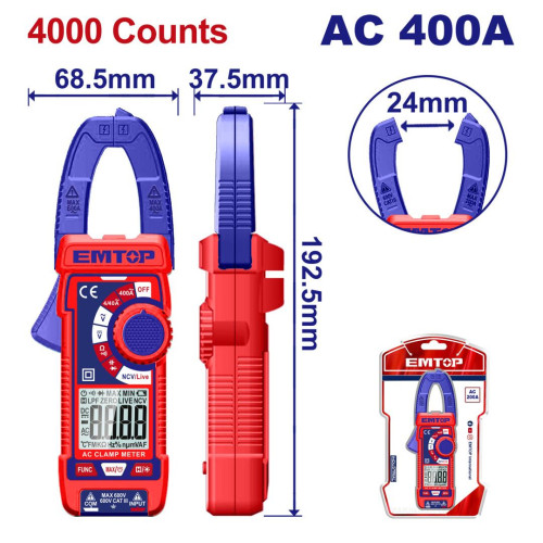 • Мультиметр-кліщі цифровий EMTOP EDMR762001