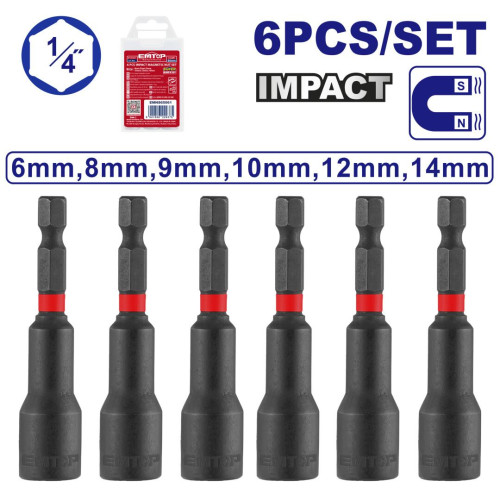 Набір головок торцевих магнітних 1/4'' EMTOP EMNS65061, 6 шт.