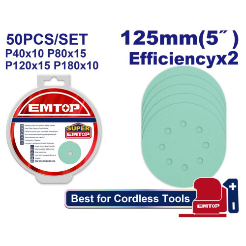 Набір шліфувальних дисків EMTOP ESPR125050, 50 шт.